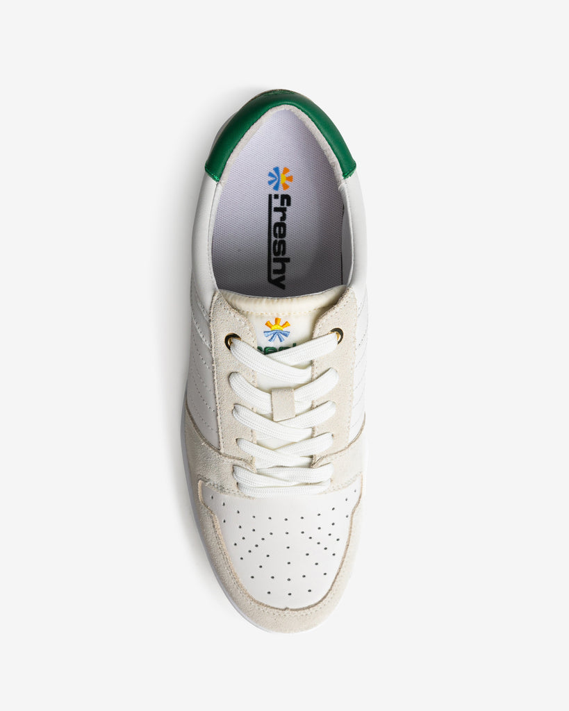 With a clean, classic design that is paired with our subtle Freshyworld flair, this sneaker speaks volumes—without ever raising its voice.